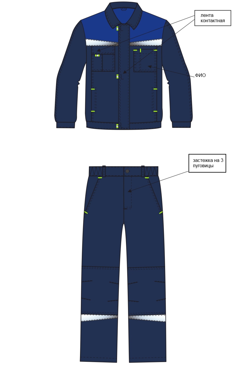 ➤ СОП: по шву притачивания кокетки и по шву наколенников косые вставки, на спинке по шву кокетки лента 50 мм.