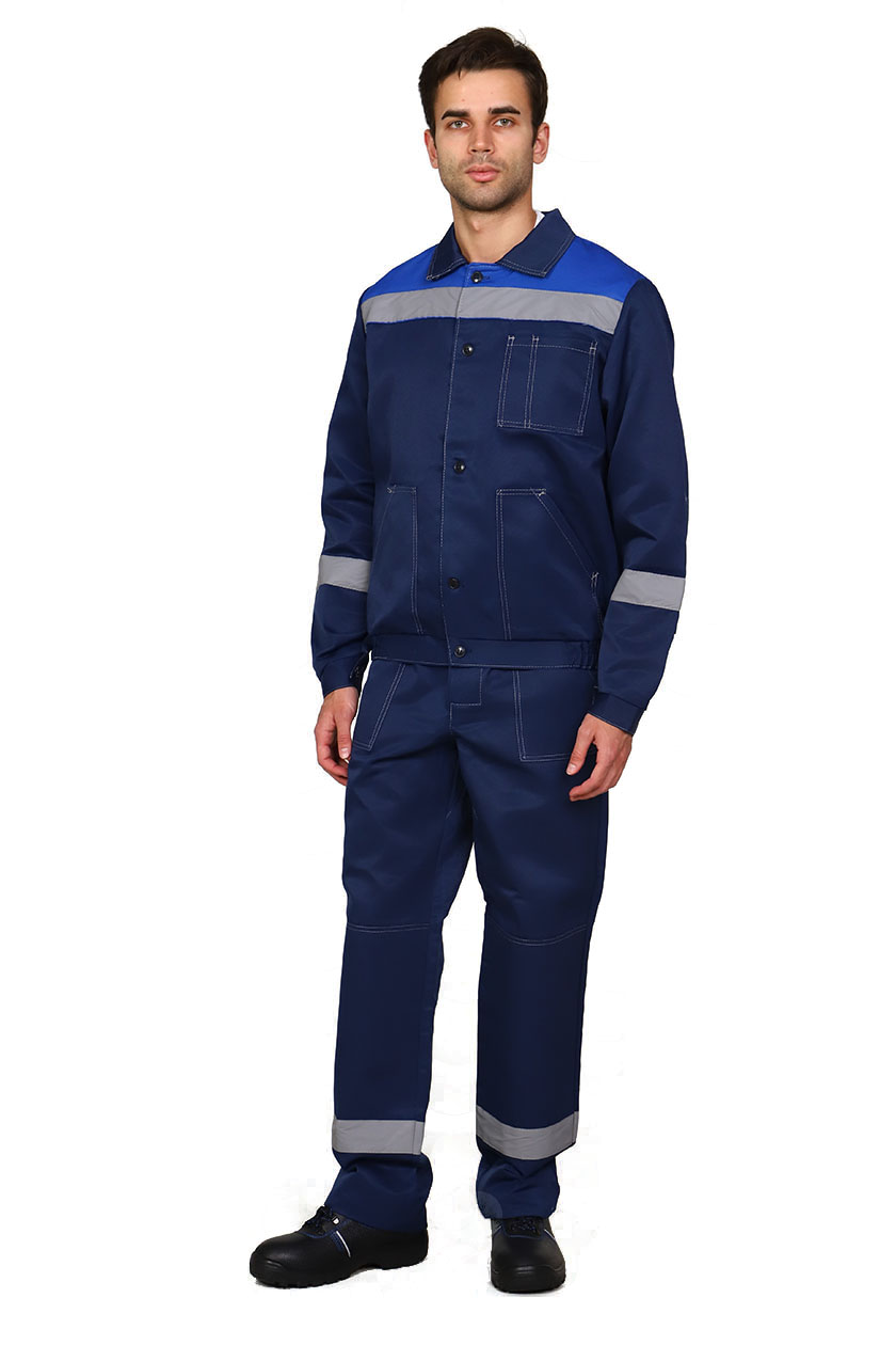 Рукава с манжетами, застегивающимися на пуговицу, с налокотниками. Притачной пояс с участками эластичной тесьмы по бокам. По шву притачивания кокетки и по рукавам СОП 50 мм.