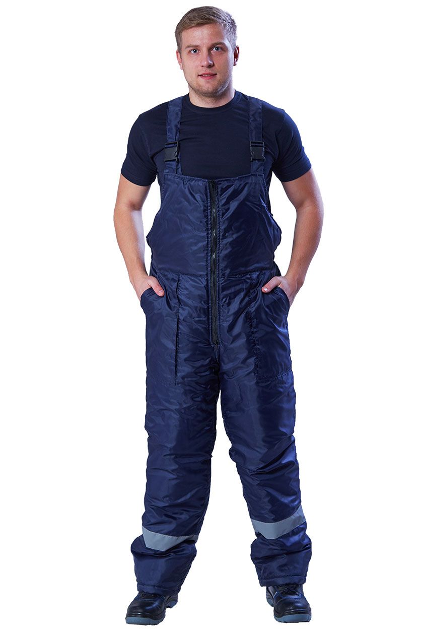 ➠ Полукомбинезон с центральной застежкой на 2-х замковую молнию. Два накладных объемных кармана с наклонным входом. СОП 50 мм по низу полукомбинезона.